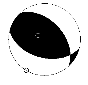 | Механизм очага землетрясения рассчитан в ИОЦ ГС РАН по знакам первых вступлений продольных волн на 42-х станциях, из них на 28-и зарегистрированы волны сжатия (знаки плюс), на 14-и волны разрежения (знаки минус). Станции расположены в интервале эпицентральных расстояний 0.5–81º и в азимутальном створе Az=10-358º. Механизм очага в стереографической проекции на нижней полусфере показан на рис. 5, элементы механизма представлены в табл.2. Землетрясение возникло под действием напряжений сжатия, ориентированных на юго-запад (Az=210º), ось растяжения под углом (Pl=72º) направлена на северо-запад (Az=301º). Простирания нодальных плоскостей совпадают с простиранием Главно-Кавказского надвига (Физика Земли, 2013, № 4, Кадиров Ф. А. и др.). Нодальная плоскость NP1 имеет юго-восточное простирание (STK=104º), NP2 – северо-западное (STK=318º). Обе плоскости наклонены к горизонту под близкими углами (DP=47-48º). Тип движения по обеим плоскостям – взбросы с компонентами сдвига, по NP1 – левосторонний, по NP2 – правосторонний. |