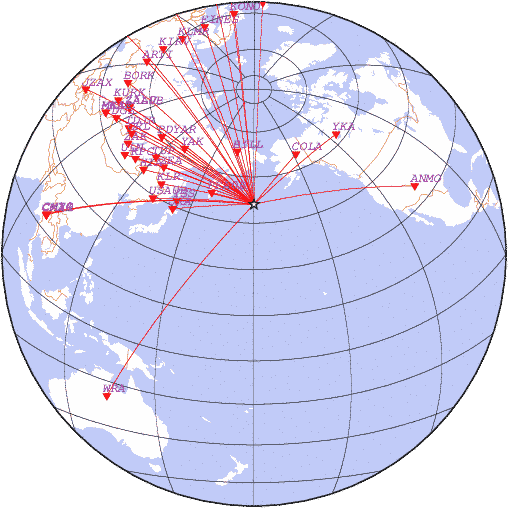 Азимут | Точность | Ms | mb |