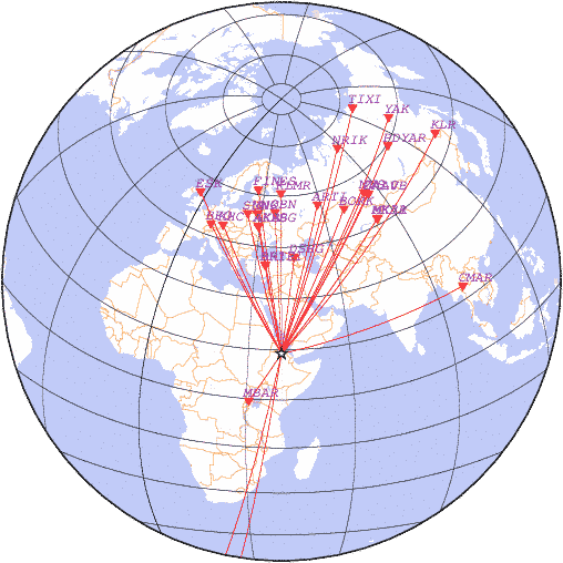 Параметры землетрясения в районе Рфиопия, время 2025-10-11 18:38:21, широта 13.87, долгота 39.75, глубина 10 км, mb: 5.0/20 рассчитаны по станциям: