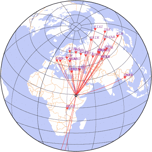 Азимут | Точность | Ms | mb |
