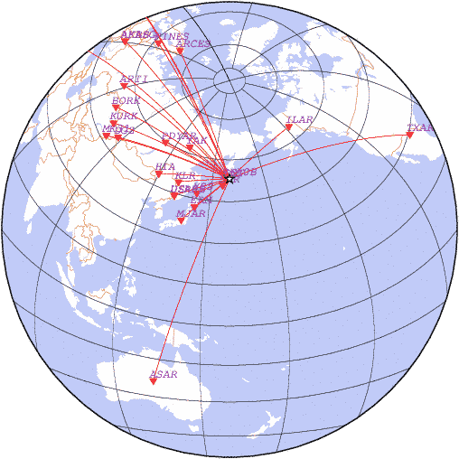 Параметры землетрясения в районе Восточное побережье Камчатки, время 2025-10-12 01:20:29, широта 53.07, долгота 159.88, глубина 50 км, mb: 4.4/16 рассчитаны по станциям: