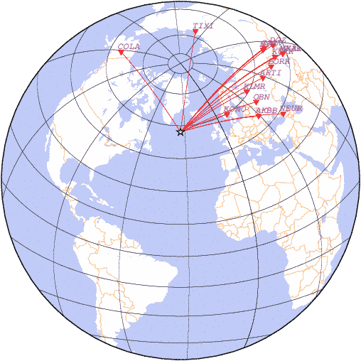 Азимут | Точность | Ms | mb |