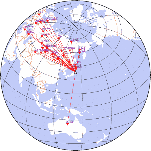 Параметры землетрясения в районе Восточное побережье РҐРѕРЅСЃСЋ, РЇРїРѕРЅРёСЏ, время 2025-10-13 03:25:43, широта 38.50, долгота 142.49, глубина 40 км, mb: 5.0/27 рассчитаны по станциям: