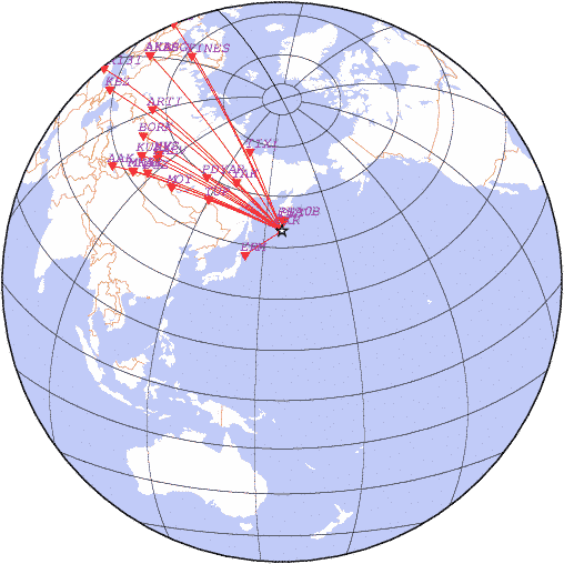 Параметры землетрясения в районе Восточнее Курильских островов, время 2025-10-13 17:40:00, широта 49.87, долгота 157.51, глубина 50 км, mb: 4.7/15 рассчитаны по станциям:
