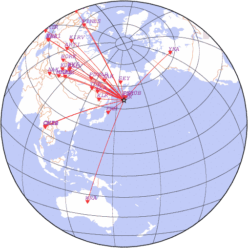 Параметры землетрясения в районе Курильские острова, время 2025-10-13 18:49:59, широта 50.69, долгота 157.18, глубина 60 км, mb: 4.8/18 рассчитаны по станциям: