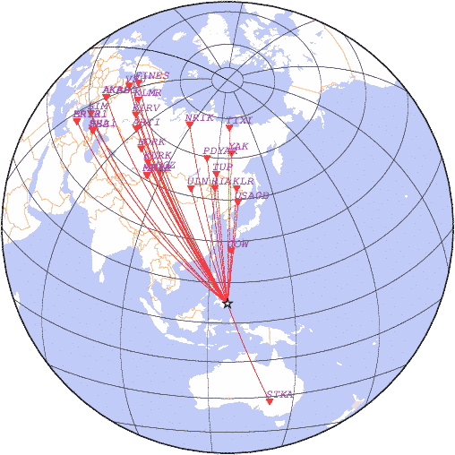 Параметры землетрясения в районе Минданао, Филиппины, время 2025-10-14 02:19:59, широта 7.28, долгота 126.69, глубина 50 км, mb: 5.0/26 рассчитаны по станциям: