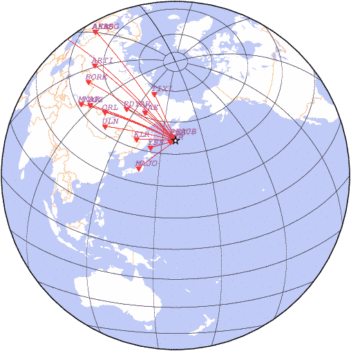 Параметры землетрясения в районе РЈ восточного побережья Камчатки, время 2025-10-16 02:22:41, широта 51.24, долгота 159.75, глубина 20 км, mb: 4.6/12 рассчитаны по станциям:
