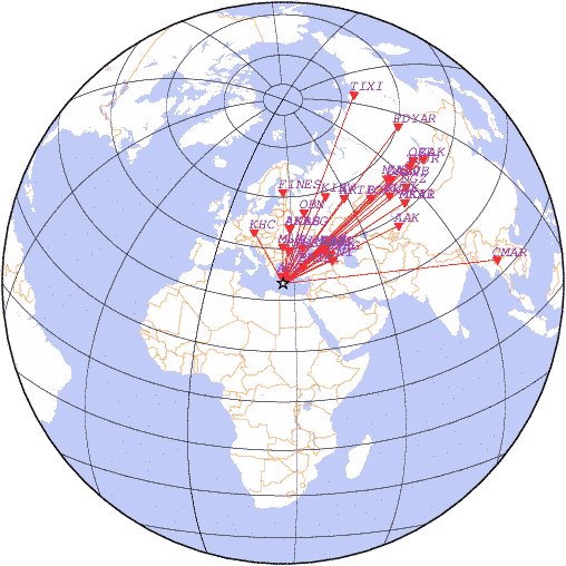 Параметры землетрясения в районе РљСЂРёС‚, Греция, время 2025-10-16 04:20:49, широта 34.89, долгота 26.09, глубина 33 км, mb: 4.6/15 рассчитаны по станциям: