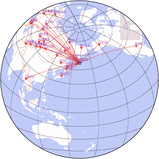 Параметры землетрясения в районе РЈ восточного побережья Камчатки, время 2025-10-23 23:07:20, широта 51.94, долгота 161.33, глубина 30 км, mb: 4.7/21 рассчитаны по станциям: