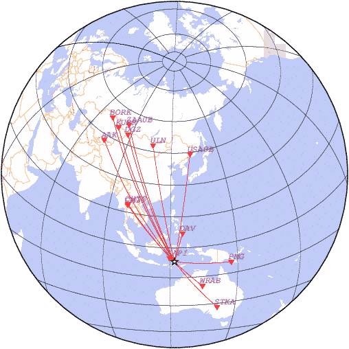 Параметры землетрясения в районе РњРѕСЂРµ Флорес, время 2025-10-26 16:18:54, широта -6.94, долгота 121.92, глубина 10 км, mb: 5.0/11 рассчитаны по станциям:
