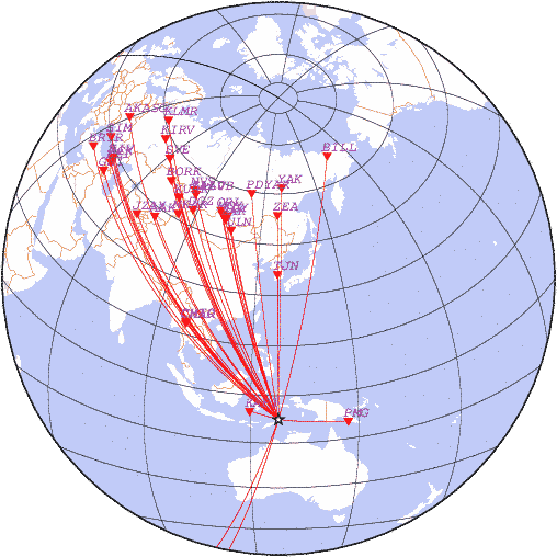 Параметры землетрясения в районе РњРѕСЂРµ Банда, время 2025-11-02 03:09:22, широта -7.48, долгота 127.78, глубина 180 км, mb: 5.3/17 рассчитаны по станциям: