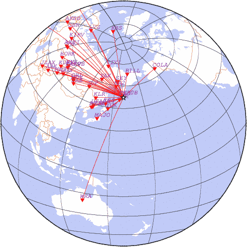 Азимут | Точность | Ms | mb |