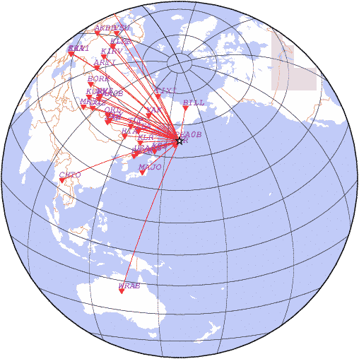 Параметры землетрясения в районе РЈ восточного побережья Камчатки, время 2025-11-03 11:47:25, широта 52.59, долгота 159.39, глубина 10 км, mb: 4.9/27 рассчитаны по станциям: