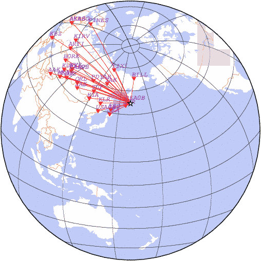 Параметры землетрясения в районе РЈ восточного побережья Камчатки, время 2025-11-04 04:11:47, широта 51.97, долгота 160.86, глубина 50 км, mb: 4.9/17 рассчитаны по станциям:
