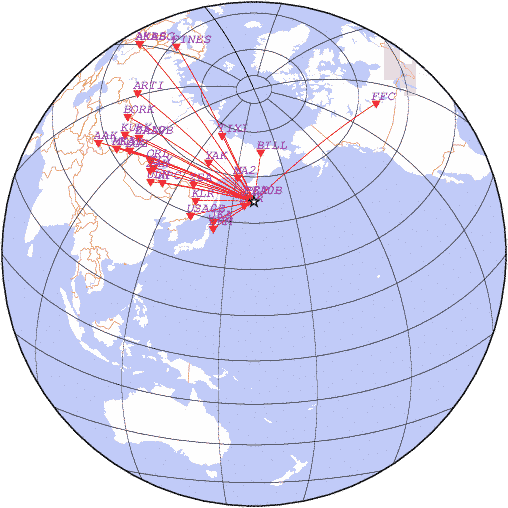 Параметры землетрясения в районе РЈ восточного побережья Камчатки, время 2025-11-04 05:33:35, широта 51.88, долгота 160.87, глубина 33 км, mb: 4.9/13 рассчитаны по станциям: