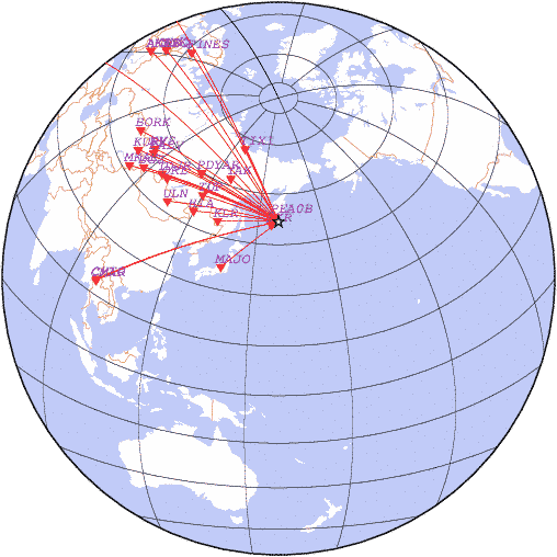 Параметры землетрясения в районе РЈ восточного побережья Камчатки, время 2025-11-04 22:51:44, широта 51.69, долгота 159.40, глубина 50 км, mb: 4.5/17 рассчитаны по станциям: