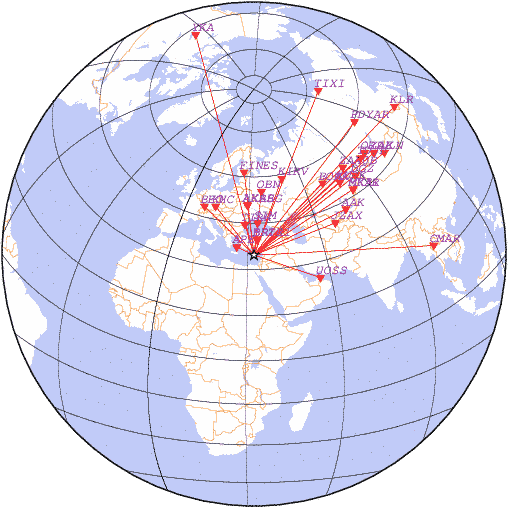 Азимут | Точность | Ms | mb |