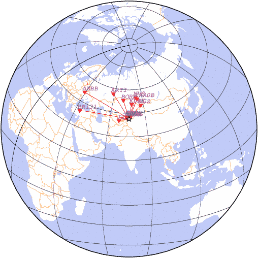 Параметры землетрясения в районе Кыргызcтан - Синьцзян погран.область, время 2025-11-17 23:56:45, широта 41.32, долгота 76.10, глубина 20 км, mb: 4.3/8 рассчитаны по станциям: