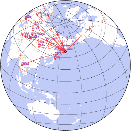Параметры землетрясения в районе РЈ восточного побережья Камчатки, время 2025-11-20 09:51:14, широта 52.10, долгота 160.38, глубина 40 км, mb: 4.7/18 рассчитаны по станциям: