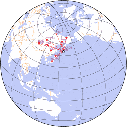 Параметры землетрясения в районе Курильские острова, время 2025-11-20 21:37:37, широта 50.40, долгота 156.73, глубина 40 км, mb: 4.1/5 рассчитаны по станциям: