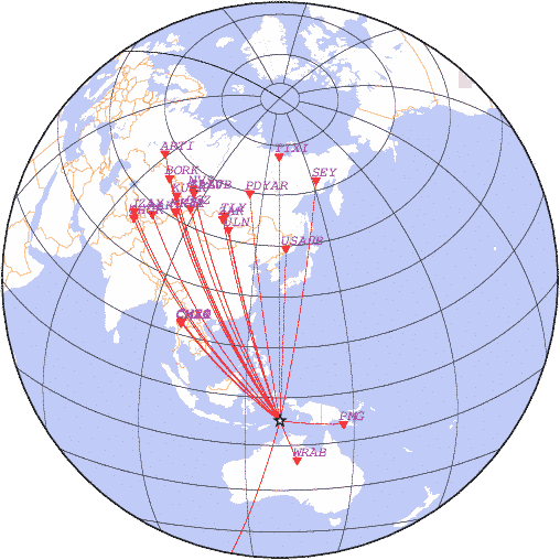 Параметры землетрясения в районе РњРѕСЂРµ Банда, время 2025-11-26 10:59:26, широта -7.18, долгота 129.60, глубина 130 км, mb: 4.9/21 рассчитаны по станциям: