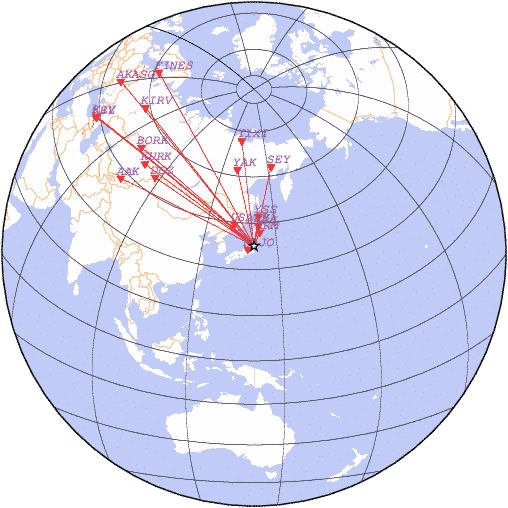 Параметры землетрясения в районе Восточный РҐРѕРЅСЃСЋ, РЇРїРѕРЅРёСЏ, время 2025-11-29 12:23:07, широта 37.56, долгота 140.71, глубина 100 км, mb: 4.4/12 рассчитаны по станциям: