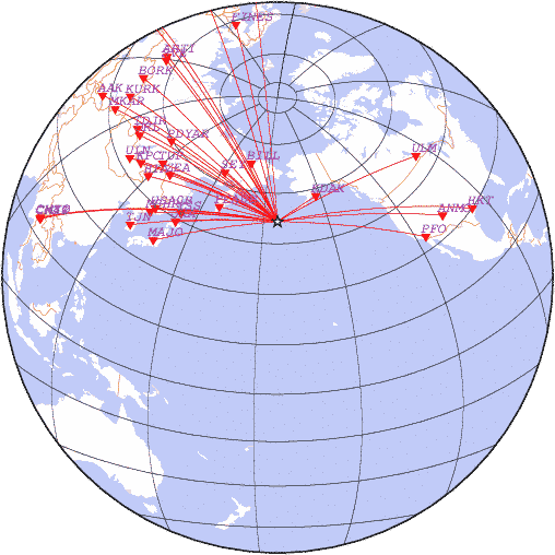 Параметры землетрясения в районе Андреяновские острова, Алеуты, время 2025-12-01 22:21:07, широта 51.55, долгота -173.46, глубина 33 км, mb: 4.8/27 рассчитаны по станциям: