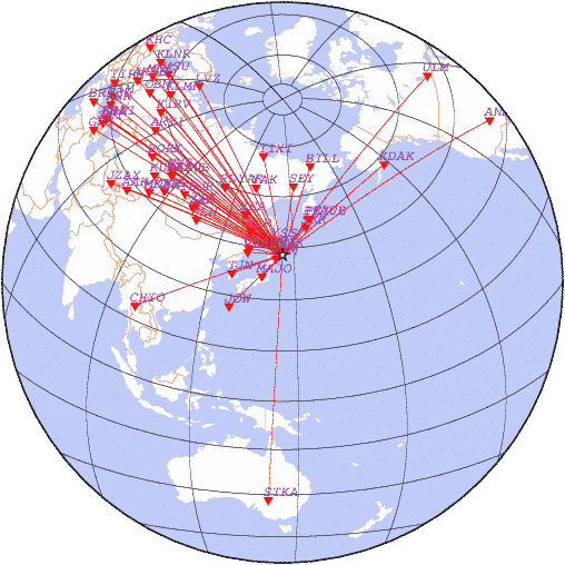 Параметры землетрясения в районе Район Хоккайдо, РЇРїРѕРЅРёСЏ, время 2025-12-02 10:03:01, широта 42.95, долгота 145.59, глубина 20 км, mb: 5.4/38 рассчитаны по станциям: