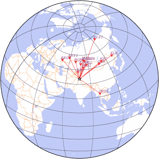 Параметры землетрясения в районе Восточный Кашмир, время 2025-12-04 00:21:42, широта 35.58, долгота 76.65, глубина 100 км, mb: 4.2/6 рассчитаны по станциям: