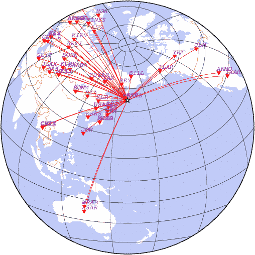 Параметры землетрясения в районе РЈ восточного побережья Камчатки, время 2025-12-06 02:10:26, широта 52.49, долгота 160.62, глубина 20 км, mb: 5.3/33 рассчитаны по станциям:
