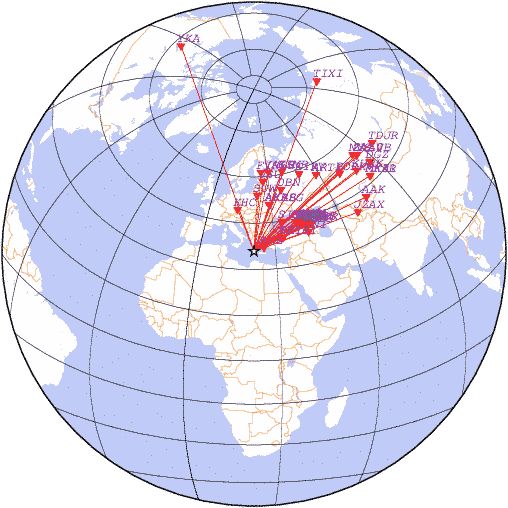 Азимут | Точность | Ms | mb |