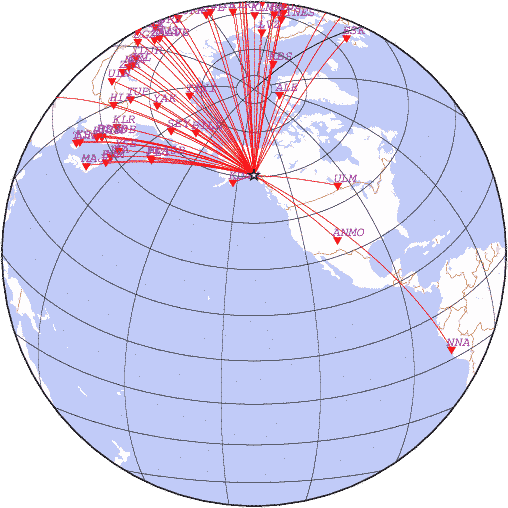 Параметры землетрясения в районе Юго-Восточная Аляска, время 2025-12-07 04:20:36, широта 60.53, долгота -140.09, глубина 10 км, mb: 5.4/41 рассчитаны по станциям: