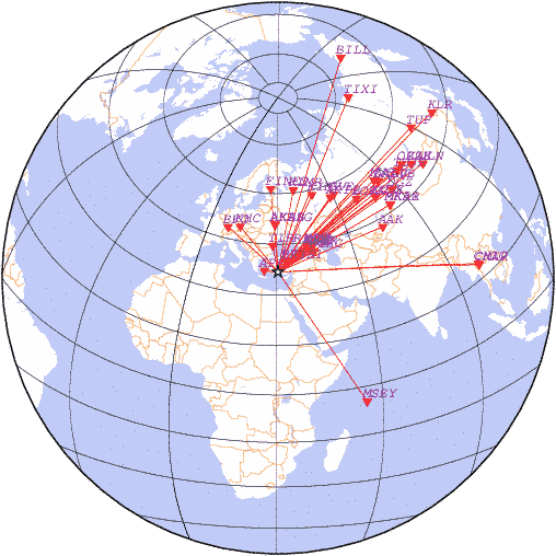 Параметры землетрясения в районе Турция, время 2025-12-08 00:31:57, широта 36.78, долгота 30.51, глубина 10 км, mb: 4.6/17 рассчитаны по станциям: