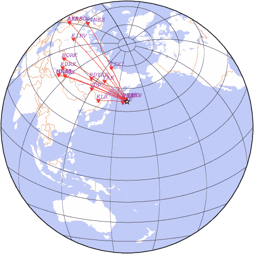 Параметры землетрясения в районе РЈ восточного побережья Камчатки, время 2025-12-08 03:07:27, широта 51.34, долгота 160.24, глубина 20 км, mb: 4.5/12 рассчитаны по станциям: