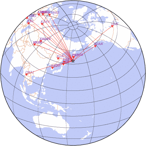 Параметры землетрясения в районе Восточнее Курильских островов, время 2025-12-12 00:25:28, широта 48.50, долгота 157.40, глубина 33 км, mb: 4.9/16 рассчитаны по станциям: