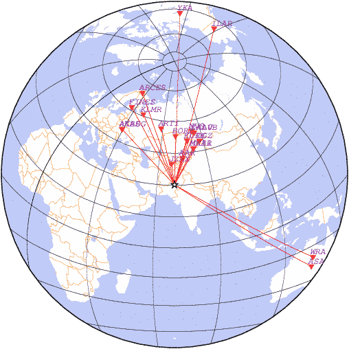 Параметры землетрясения в районе Пакистан, время 2025-12-13 13:14:57, широта 30.20, долгота 69.50, глубина 10 км, mb: 4.5/9 рассчитаны по станциям: