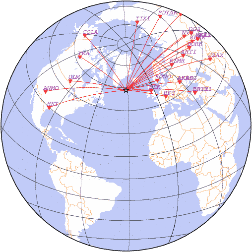 Параметры землетрясения в районе Хребет Рейкьянес, время 2025-12-24 21:37:51, широта 58.33, долгота -32.19, глубина 10 км, mb: 4.9/20 рассчитаны по станциям: