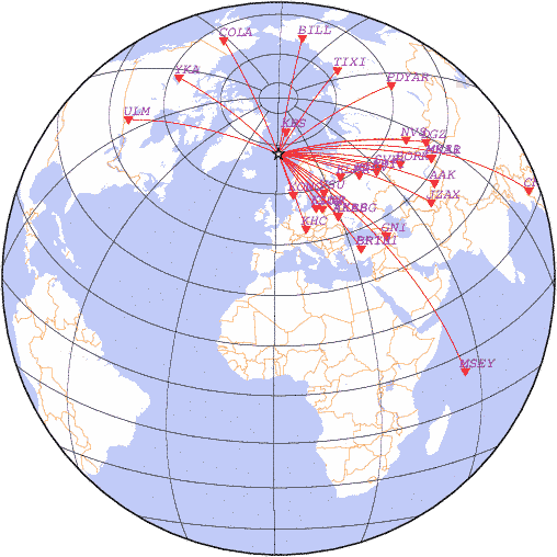 Азимут | Точность | Ms | mb |