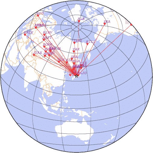 Параметры землетрясения в районе Западный РҐРѕРЅСЃСЋ, РЇРїРѕРЅРёСЏ, время 2025-12-26 21:09:36, широта 35.46, долгота 135.58, глубина 350 км, mb: 4.2/17 рассчитаны по станциям: