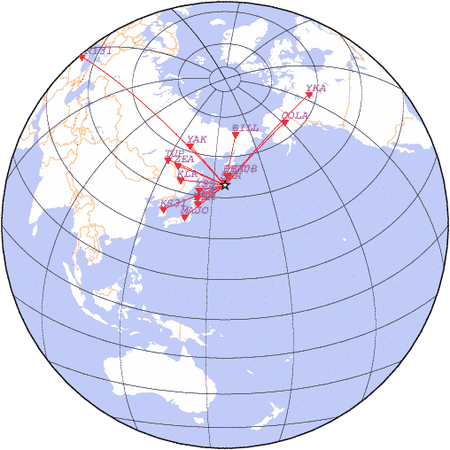Параметры землетрясения в районе Курильские острова, время 2025-12-27 13:06:36, широта 49.45, долгота 156.50, глубина 15 км, mb: 4.5/6 рассчитаны по станциям: