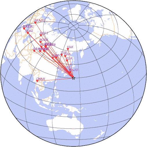 Параметры землетрясения в районе Юго-восточнее РҐРѕРЅСЃСЋ, РЇРїРѕРЅРёСЏ, время 2025-12-27 22:48:02, широта 29.92, долгота 142.62, глубина 40 км, mb: 4.4/17 рассчитаны по станциям: