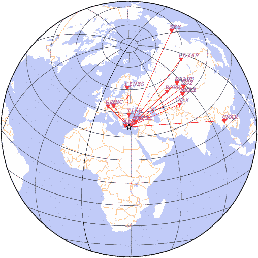 Азимут | Точность | Ms | mb |