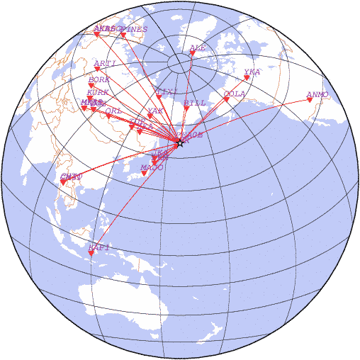 Азимут | Точность | Ms | mb |