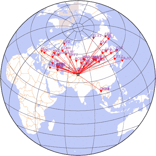 Параметры землетрясения в районе Таджикистан - Синьцзян погран.область, время 2026-01-08 21:14:20, широта 38.60, долгота 73.33, глубина 130 км, mb: 5.3/34 рассчитаны по станциям: