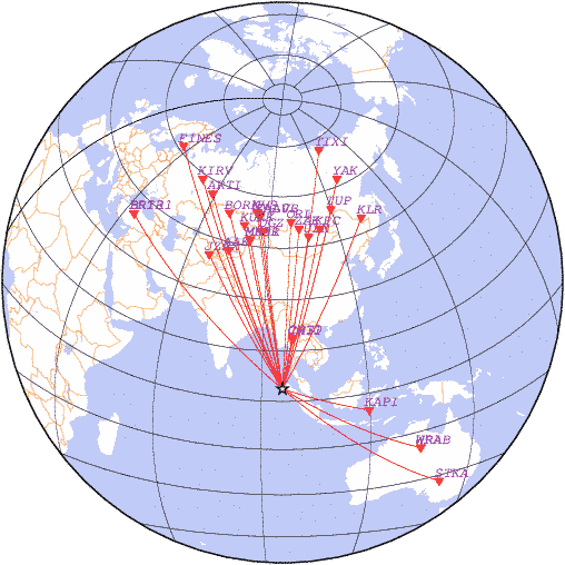 Параметры землетрясения в районе РЈ западного побережья Северной Суматры, время 2026-01-09 00:54:02, широта 3.73, долгота 95.87, глубина 60 км, mb: 4.7/22 рассчитаны по станциям: