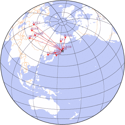 Параметры землетрясения в районе Курильские острова, время 2026-01-11 16:13:18, широта 50.00, долгота 156.87, глубина 20 км, mb: 4.4/5 рассчитаны по станциям: