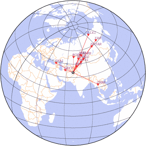 Параметры землетрясения в районе Район Гиндукуш, Афганистан, время 2026-01-13 14:49:10, широта 35.46, долгота 69.19, глубина 10 км, mb: 4.4/6 рассчитаны по станциям: