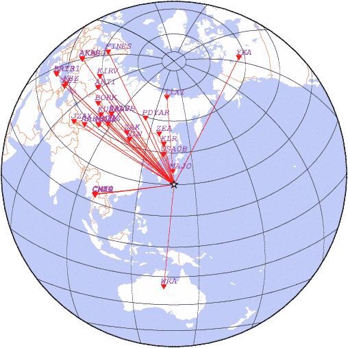Параметры землетрясения в районе Юго-восточнее РҐРѕРЅСЃСЋ, РЇРїРѕРЅРёСЏ, время 2026-01-15 02:32:20, широта 30.08, долгота 138.85, глубина 440 км, mb: 4.6/21 рассчитаны по станциям:
