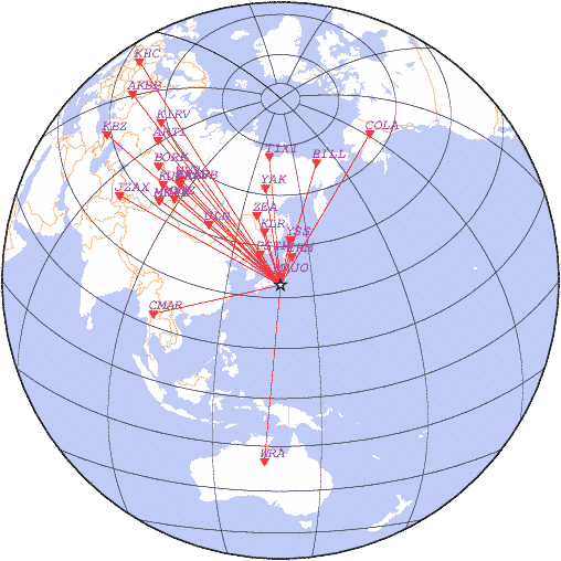 Параметры землетрясения в районе Юго-восточнее РҐРѕРЅСЃСЋ, РЇРїРѕРЅРёСЏ, время 2026-01-19 16:30:19, широта 33.67, долгота 138.74, глубина 10 км, mb: 4.8/18 рассчитаны по станциям: