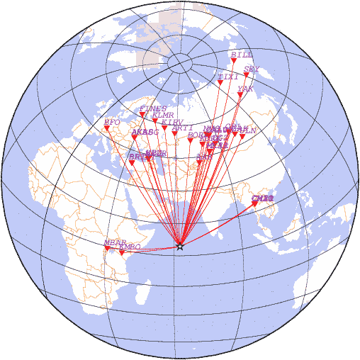 Параметры землетрясения в районе Хребет Карлсберга, время 2026-01-20 11:14:42, широта 4.37, долгота 62.60, глубина 10 км, mb: 5.0/23 рассчитаны по станциям: